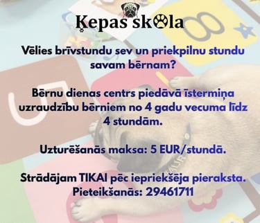 “Ķepas skola” ir īslaicīgās bērnu uzraudzības centrs - kanisstudija Cēsīs, kurā tiek realizēti pirmsskolas un sākumsskolas vecuma bērnu īstermiņa uzraudzības pakalpojumi kanisterapijas suņu pavadībā, nodrošinot bērnu vispusīgu attīstību un saturīgu un jēgpilnu brīvā laika pavadīšanu aizraujošā un attīstošā vidē.